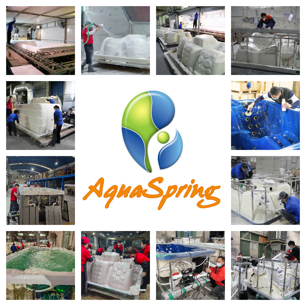 真空吸塑成型→外殼加固→恒溫箱固化→噴涂保溫層→安裝支架和切割→安裝零件及接電→第一次試水檢測→安裝裙邊→第二次試水檢測→排水→第三次檢查清潔→成品包裝