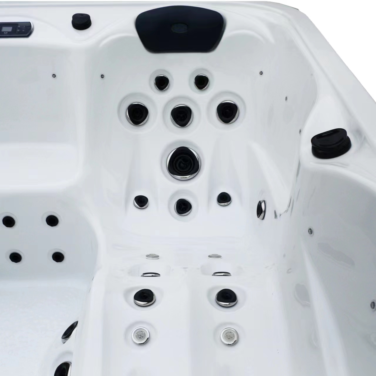 首先每個(gè)缸體都覆蓋有25-30mm的高密度聚氨酯泡沫(密度約為30kg/m3),具有更好的保溫性能。另外,裙邊板內(nèi)側(cè)配有鋁箔保溫材料,應(yīng)用北歐熱鎖原理,創(chuàng)造了更加節(jié)能的按摩浴缸。