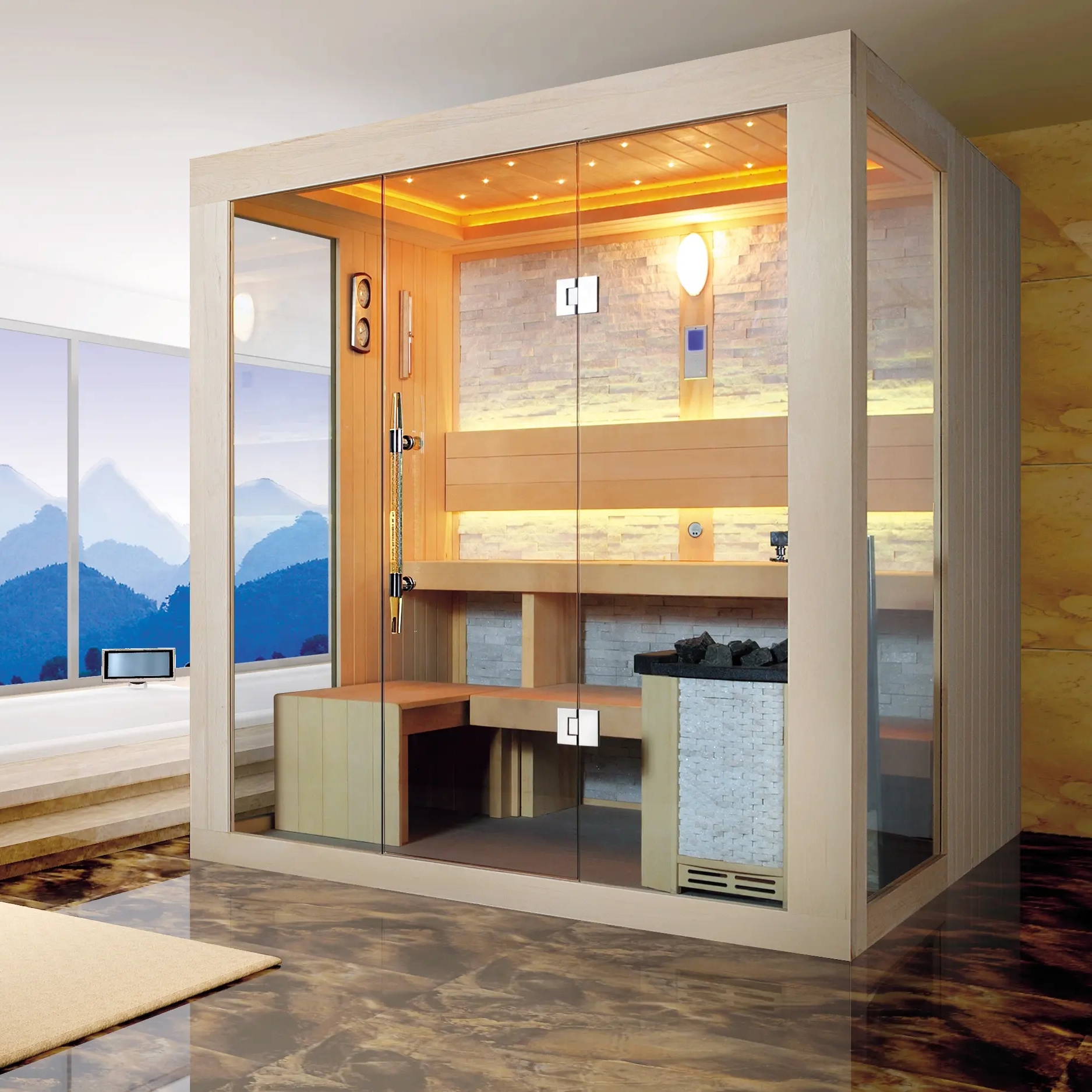 這款傳統(tǒng)桑拿房擁有兩個(gè)尺寸,用戶可以根據(jù)自己的需求進(jìn)行選擇,它的功率為3-6千瓦,配備了1個(gè)頂燈和2個(gè)揚(yáng)聲器,擁有藍(lán)牙和USB功能。此外,還配有桑拿爐和相關(guān)配件,包括桑拿石、木桶、木勺、溫濕度計(jì)、沙漏和防爆燈等。這款桑拿房不僅功能齊全,而且設(shè)計(jì)時(shí)尚,是您放松身心、舒緩壓力的理想選擇。